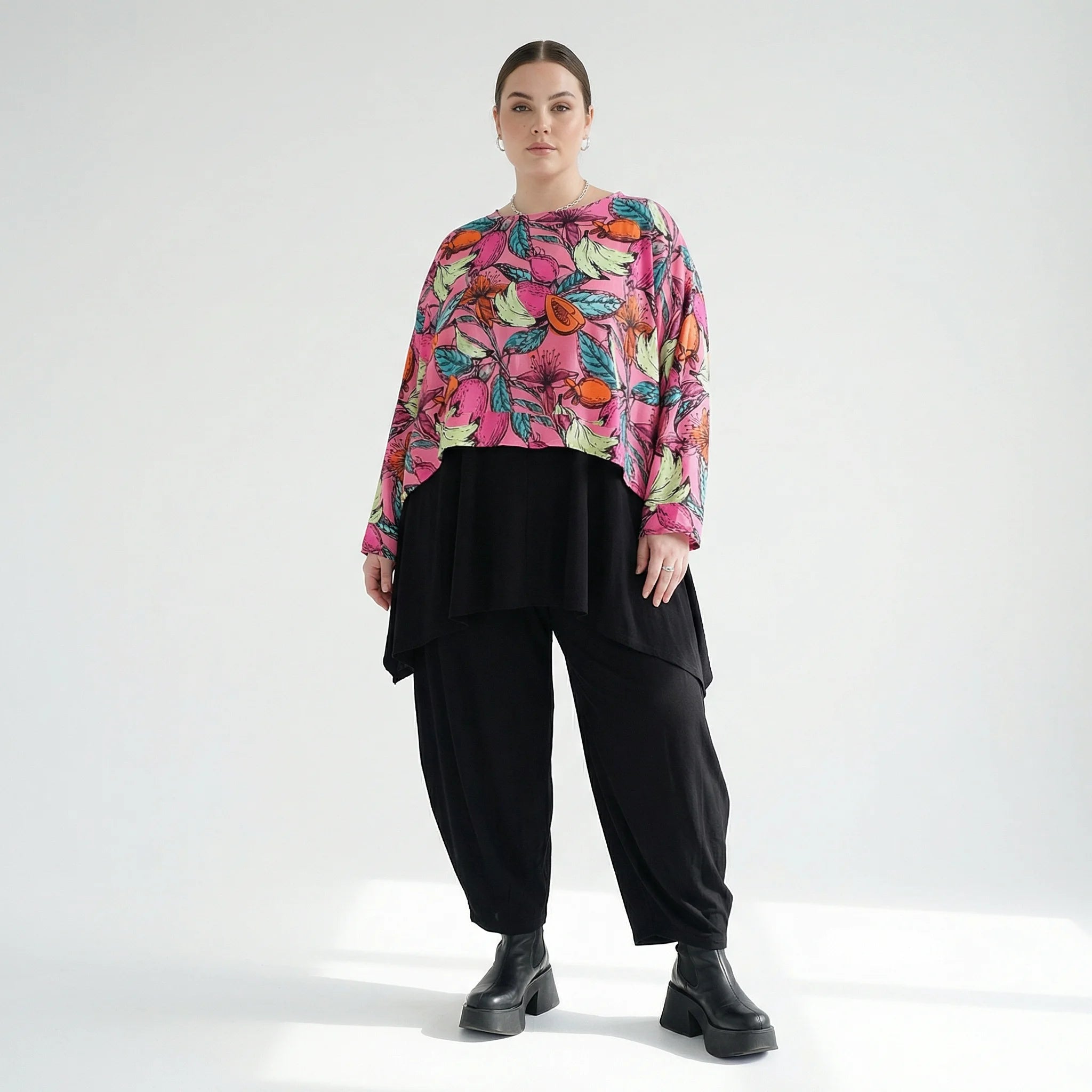 AKH Fashion Überwurf in kastiger Form, aus Baumwolle, 1507.07011, Rosa/Multi, Blumen