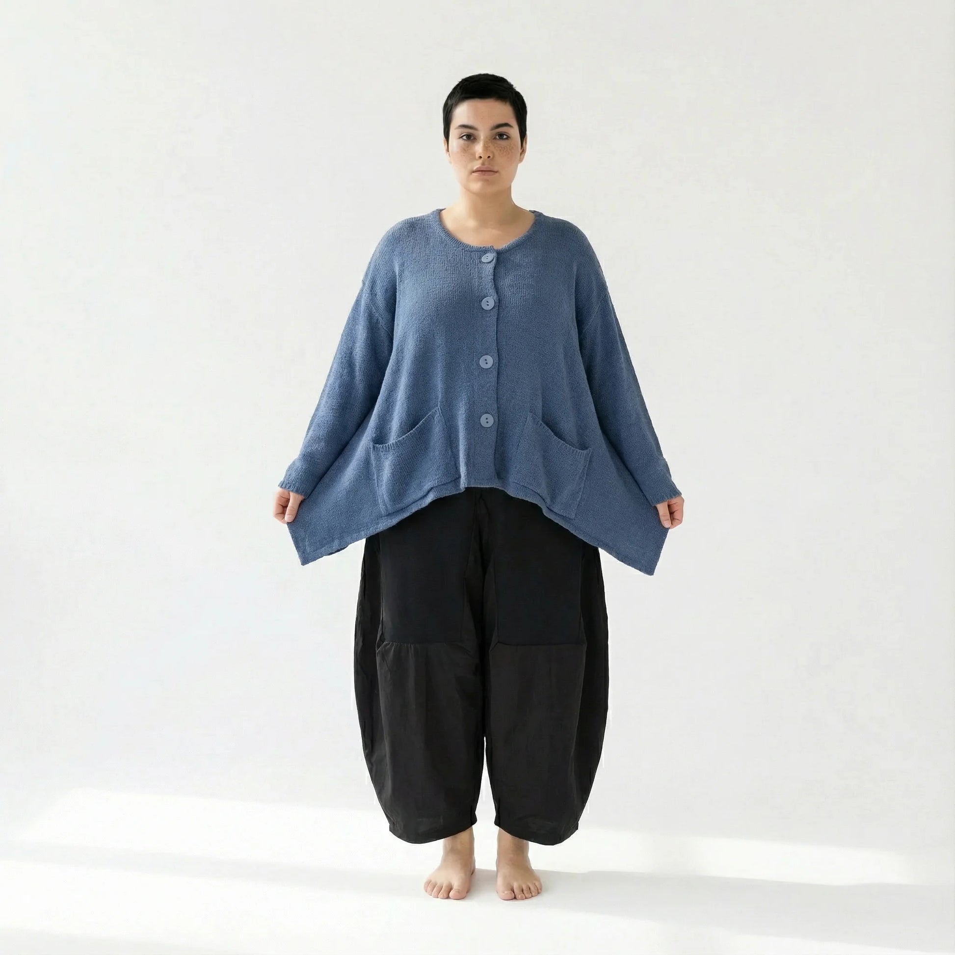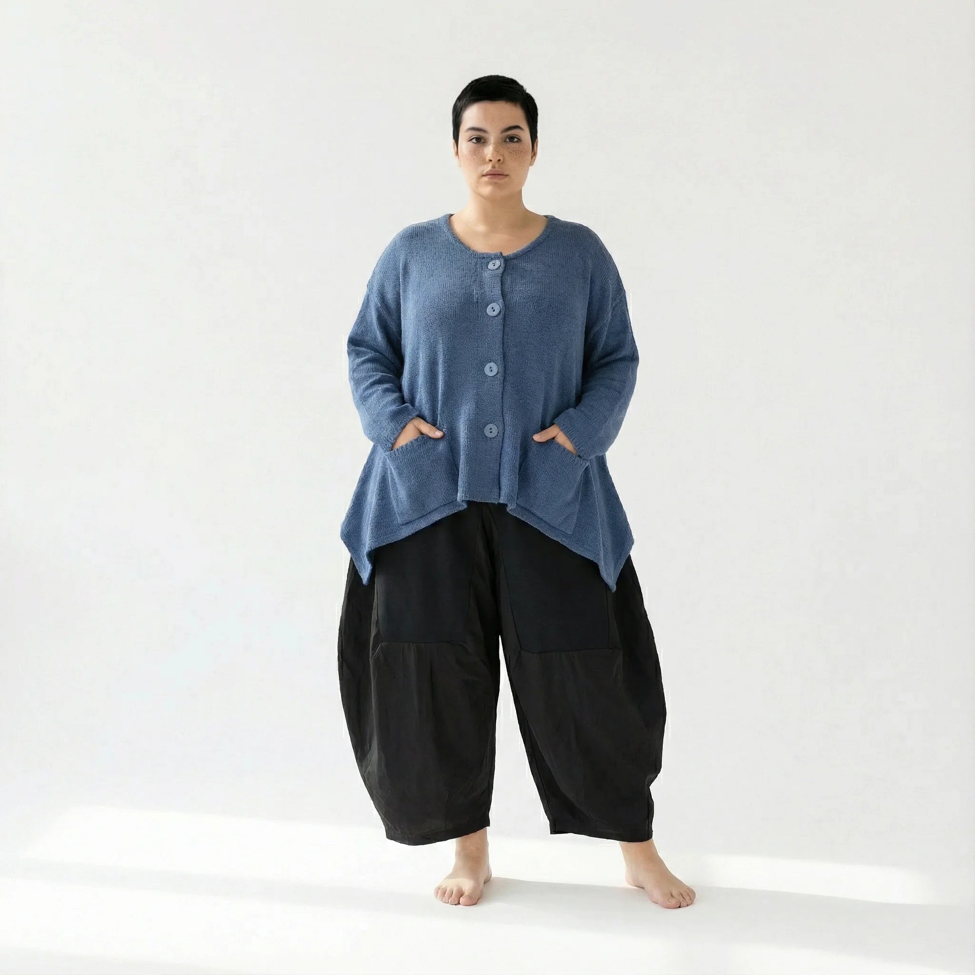 A-Form Jacke von AKH Fashion aus Viskose, 1537.00118, Azurblau, Meliert, Ausgefallen